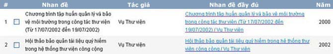 Ví dụ: Chọn tài liệu Hội thảo bảo quản tài liệu quý hiếm trong hệ thống thư viện công cộng.