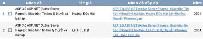 3. Dò tìm trên danh sách nhan đề của tài liệu